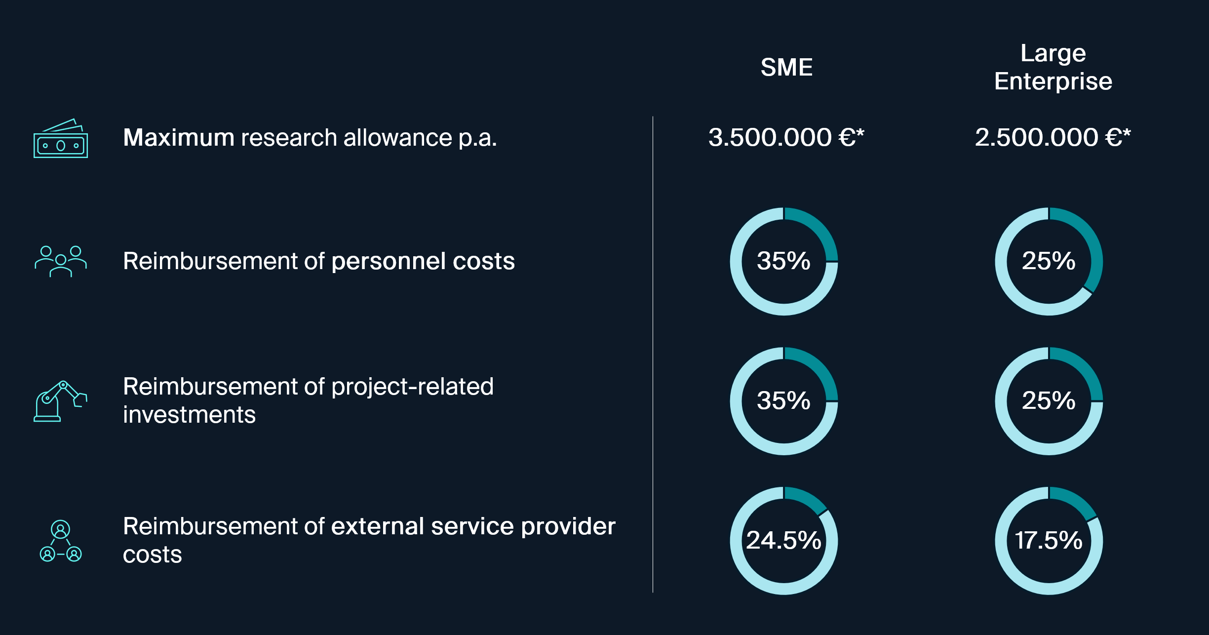 The special feature: the funding is not provided as a grant that must be applied for and approved in advance, but as a tax credit via the tax return. This means that even companies without profits benefit, since in this case the allowance is paid out by the tax office as a refund.